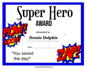A certificate illustrated with superhero icons for presenting to a child or an office hero.